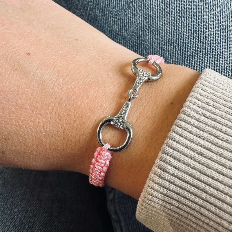 Le bracelet Taka strass est un joli mélange de style et de confort. Avec son cordon tressé et son mors orné de strass, il apporte une touche cavalière brillante tout en restant très facile à porter au quotidien. Grâce à son nœud coulissant, il s’ajuste en un clin d’œil à tous les poignets.