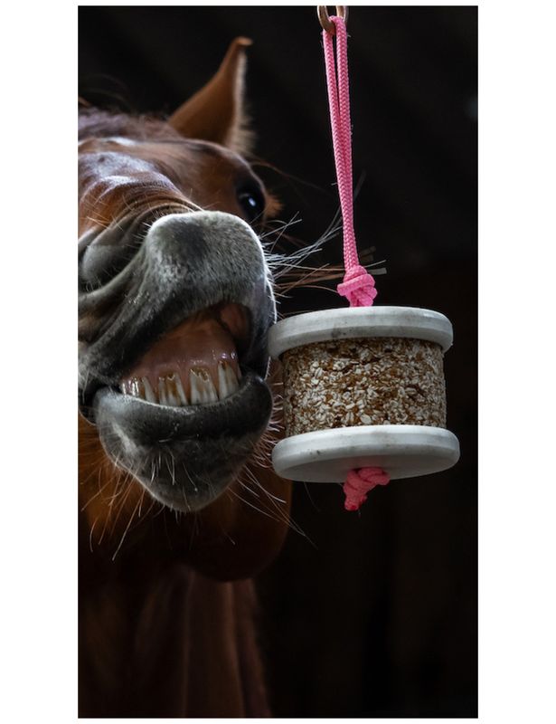 Petit Tip’s : suspendez le jouet en l’éloignant autant que possible des murs ou barreaux, pour que votre cheval ne puisse pas le coincer facilement. Vous pouvez aussi lui mettre que pendant le pansage, un soin ou un transport.
